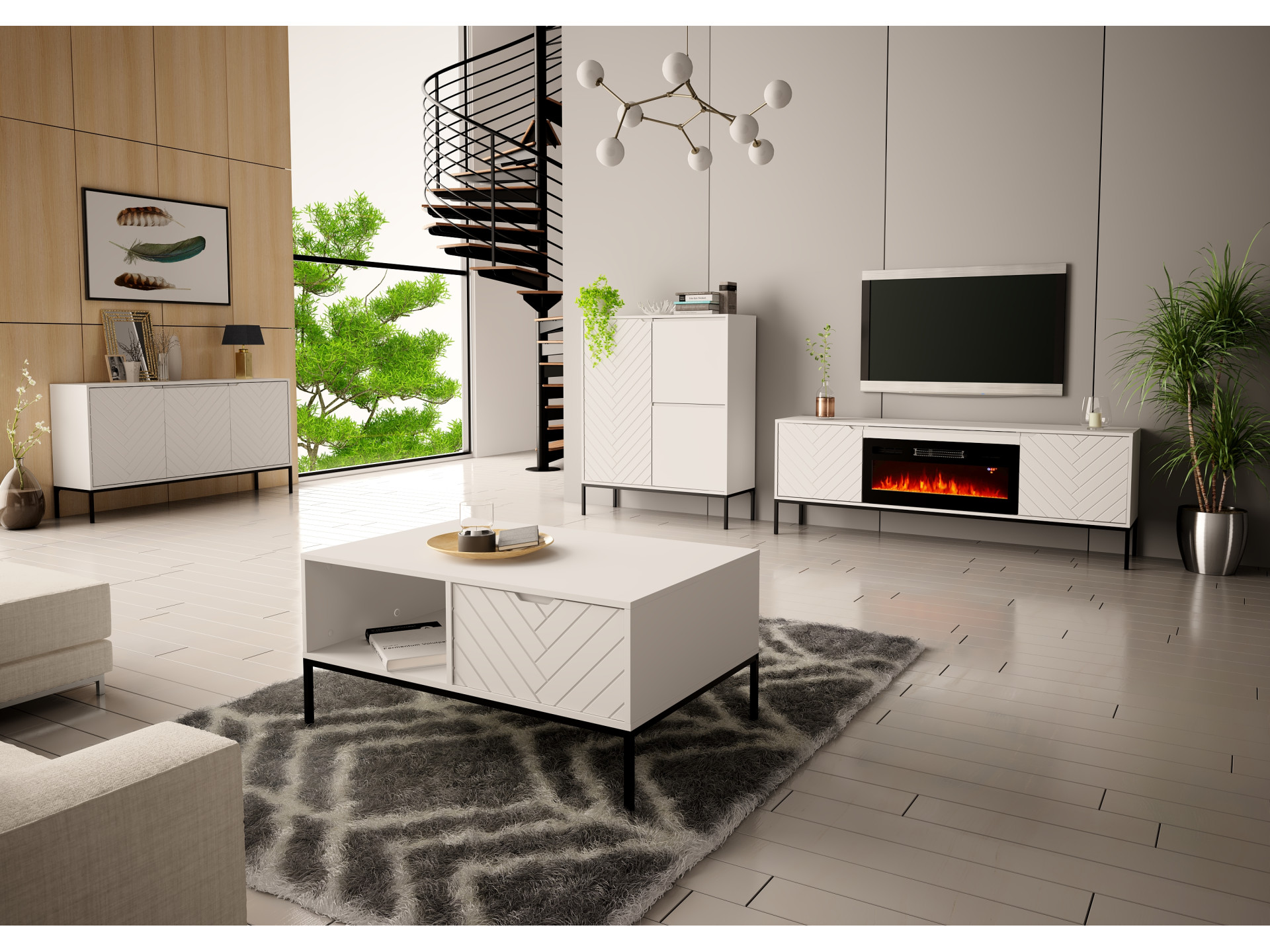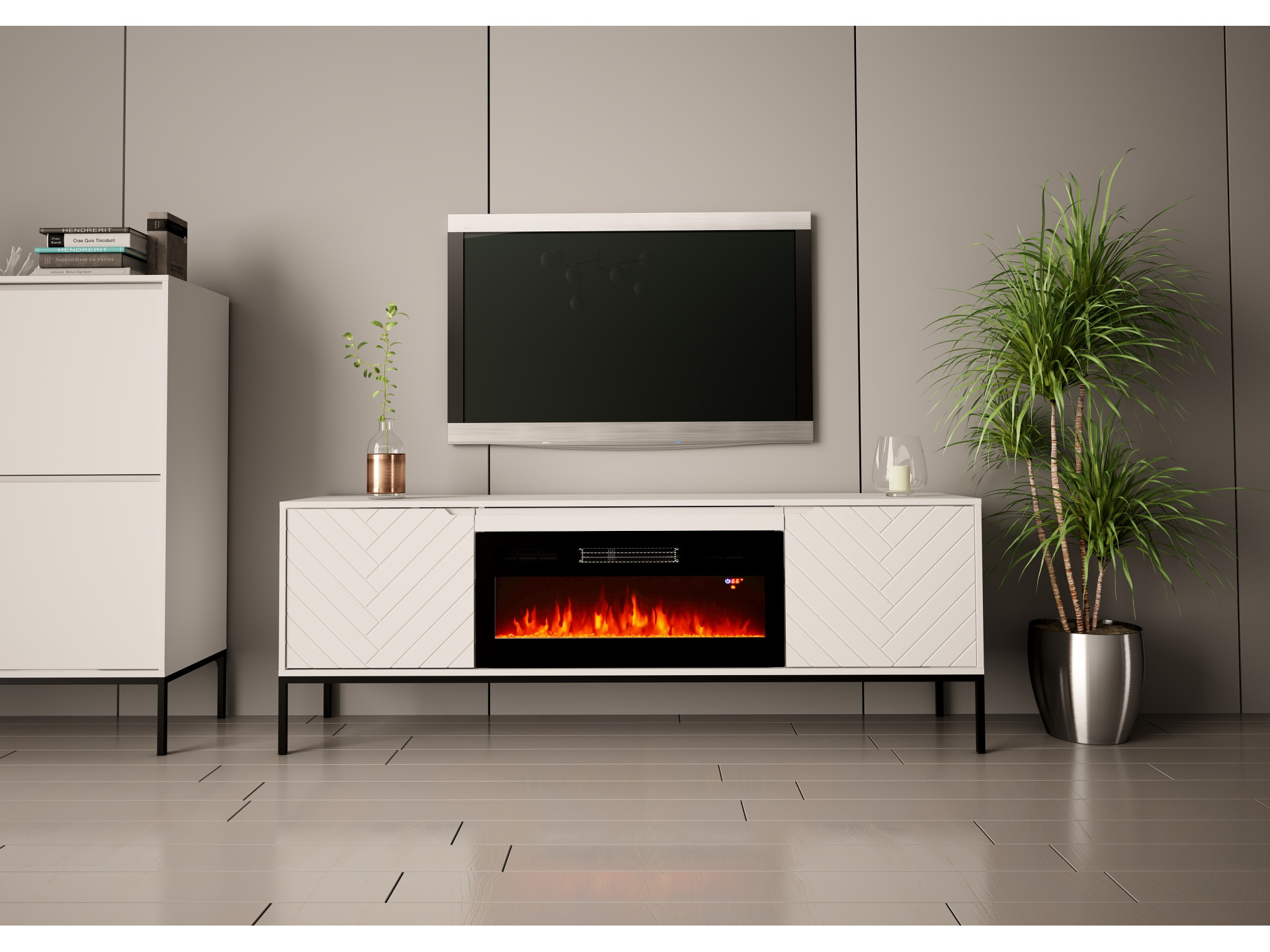 Szafka RTV z kominkiem ASPEN Biały Mat na czarnym stelażu – 1 szt.