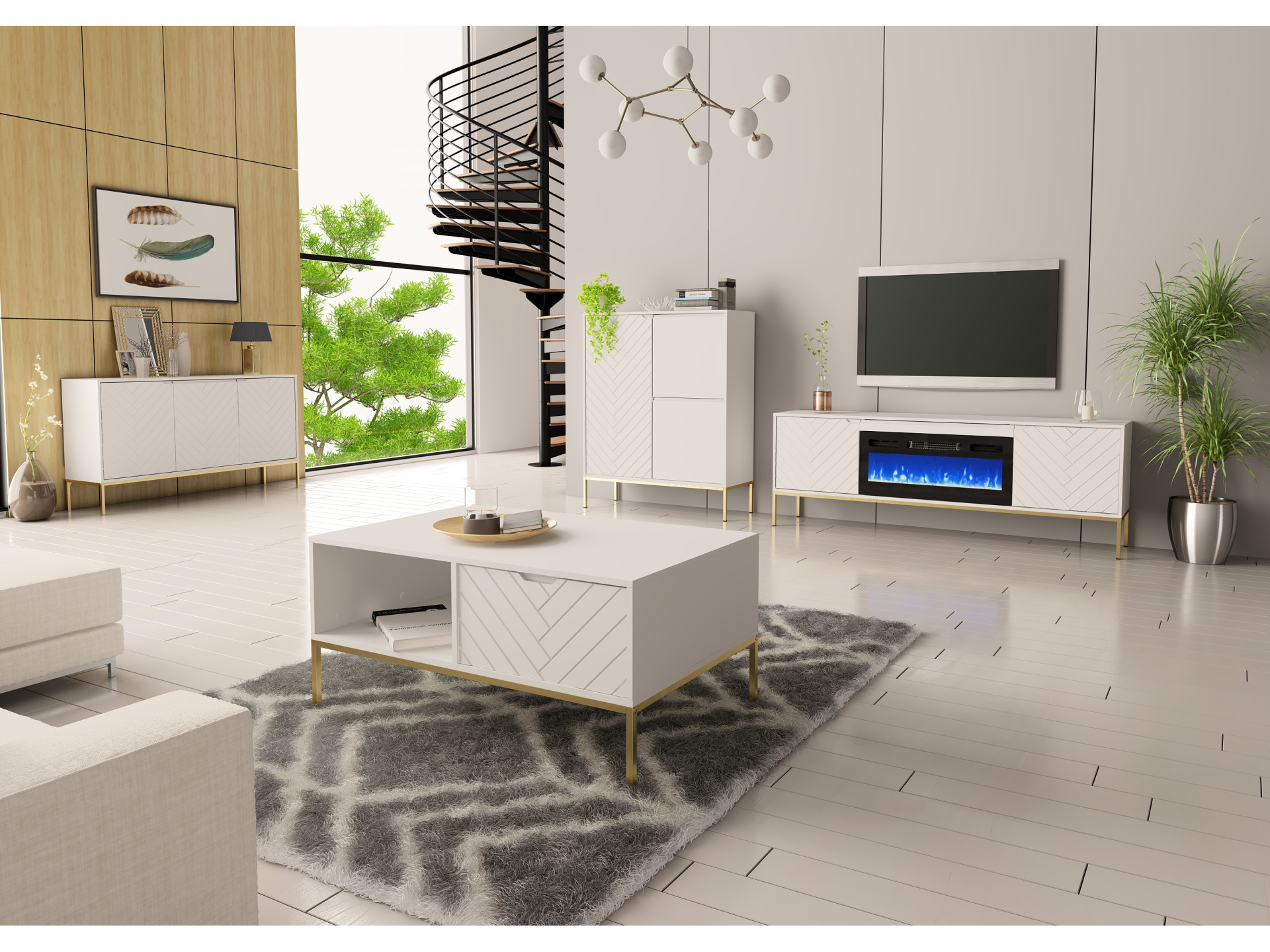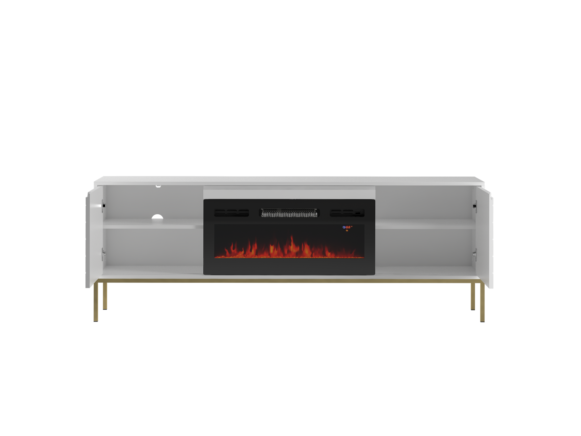 Szafka RTV z kominkiem ASPEN Biały Mat na złotym stelażu – 1 szt.
