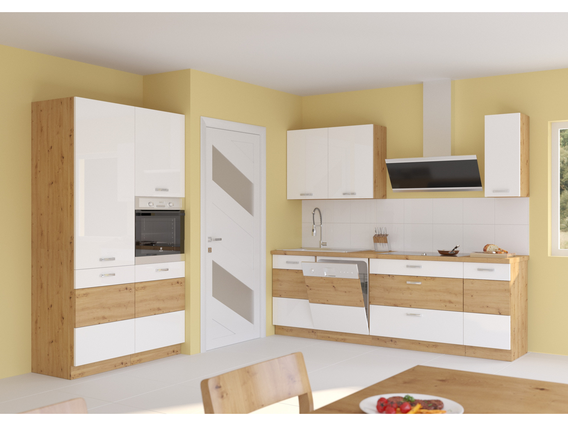 - płyta 16mm PUR HG Biały połysk / płyta laminowana 16mm Dąb Artisan