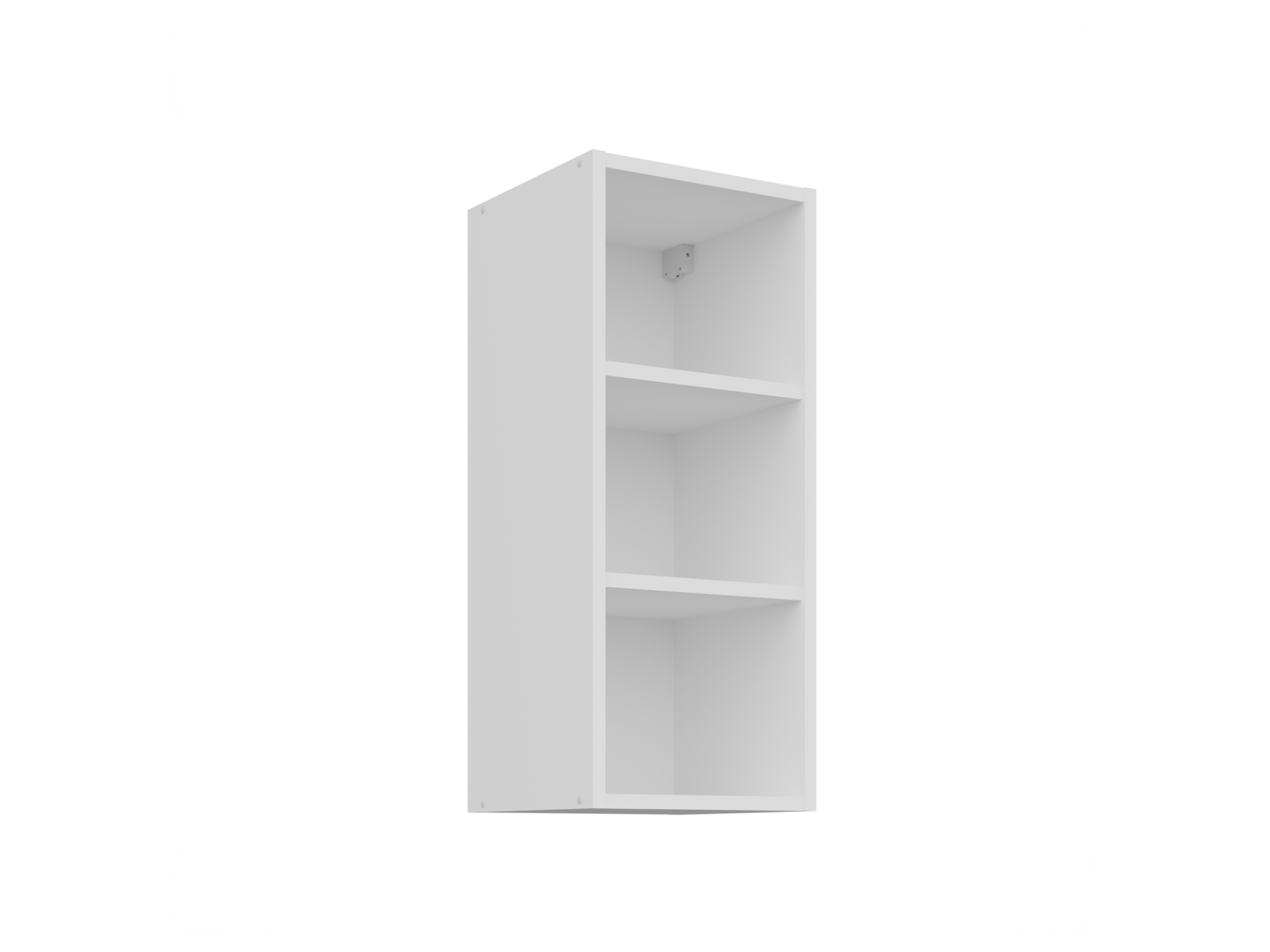 Górne szafki o wysokości 90 cm posiadają 3 półki w środku