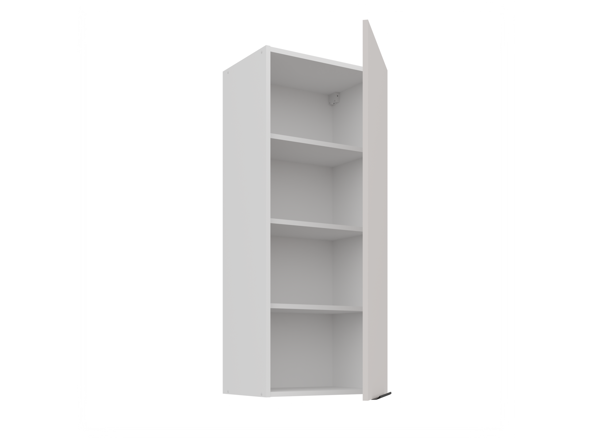 Górne szafki o wysokości 90 cm posiadają 3 półki w środku
