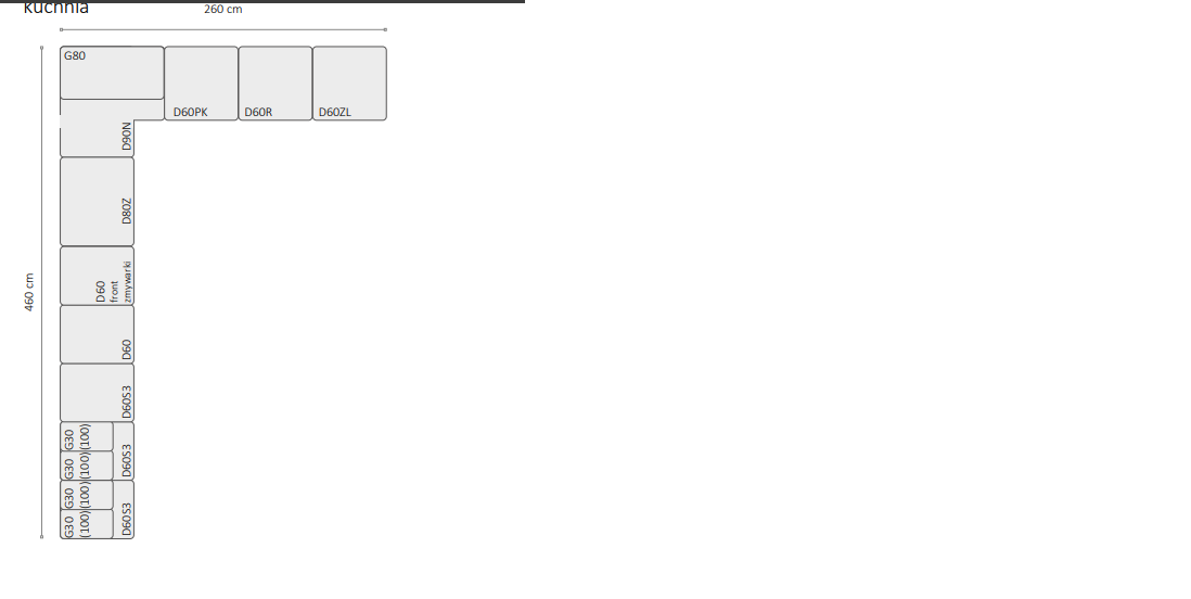 Na zdjęciu przykładowe zestawienie kuchni SORENTO o wymiarach