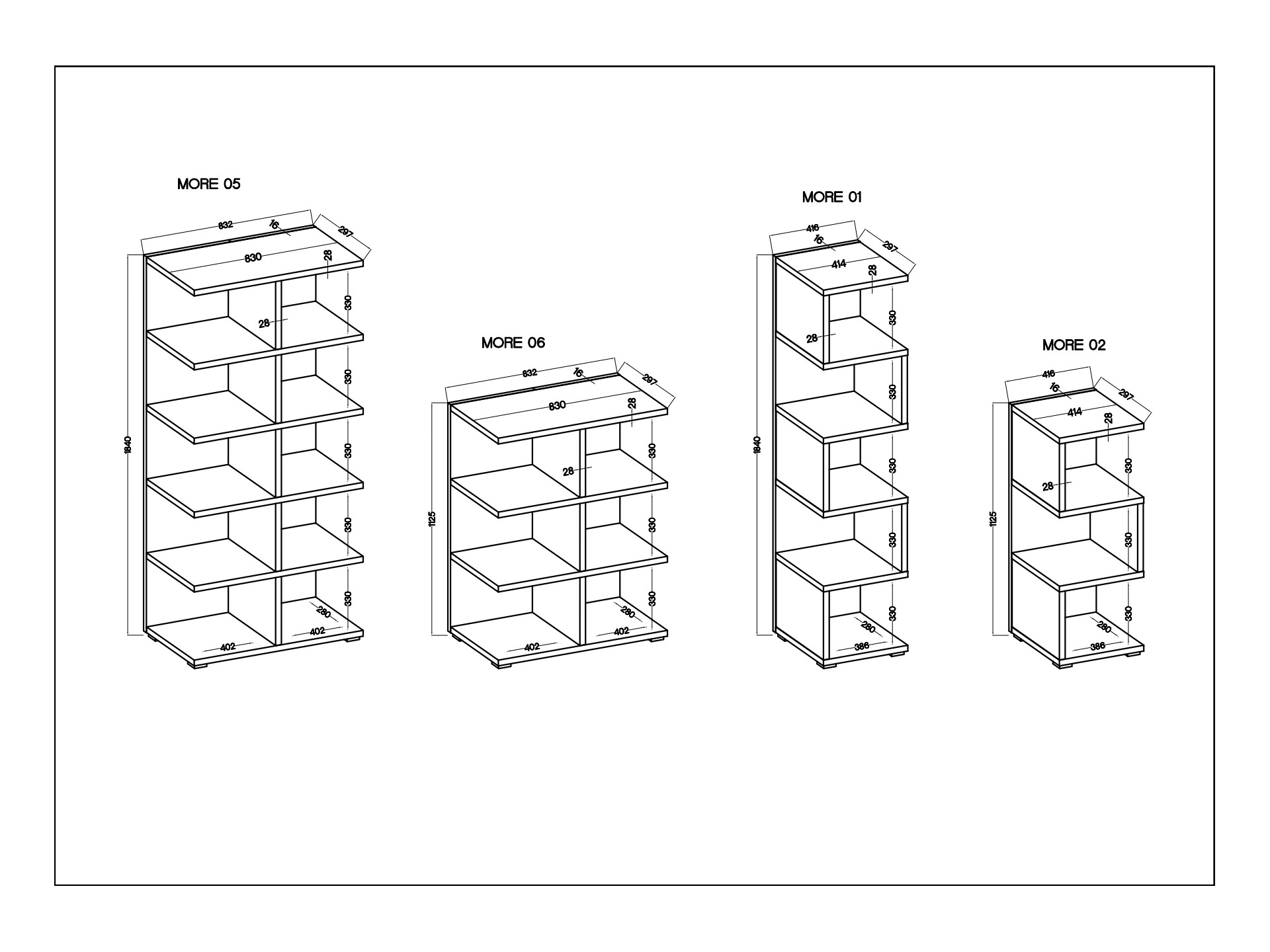 Regał More modułowy 02+06+02 kolor Jasny Szary