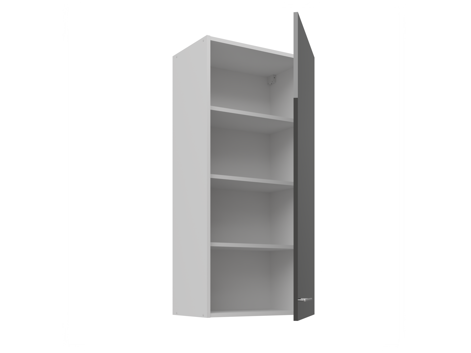 Górne szafki o wysokości 72 cm posiadają 2 półki w środku (z wyjątkiem szafek z frontami uchylnymi)
