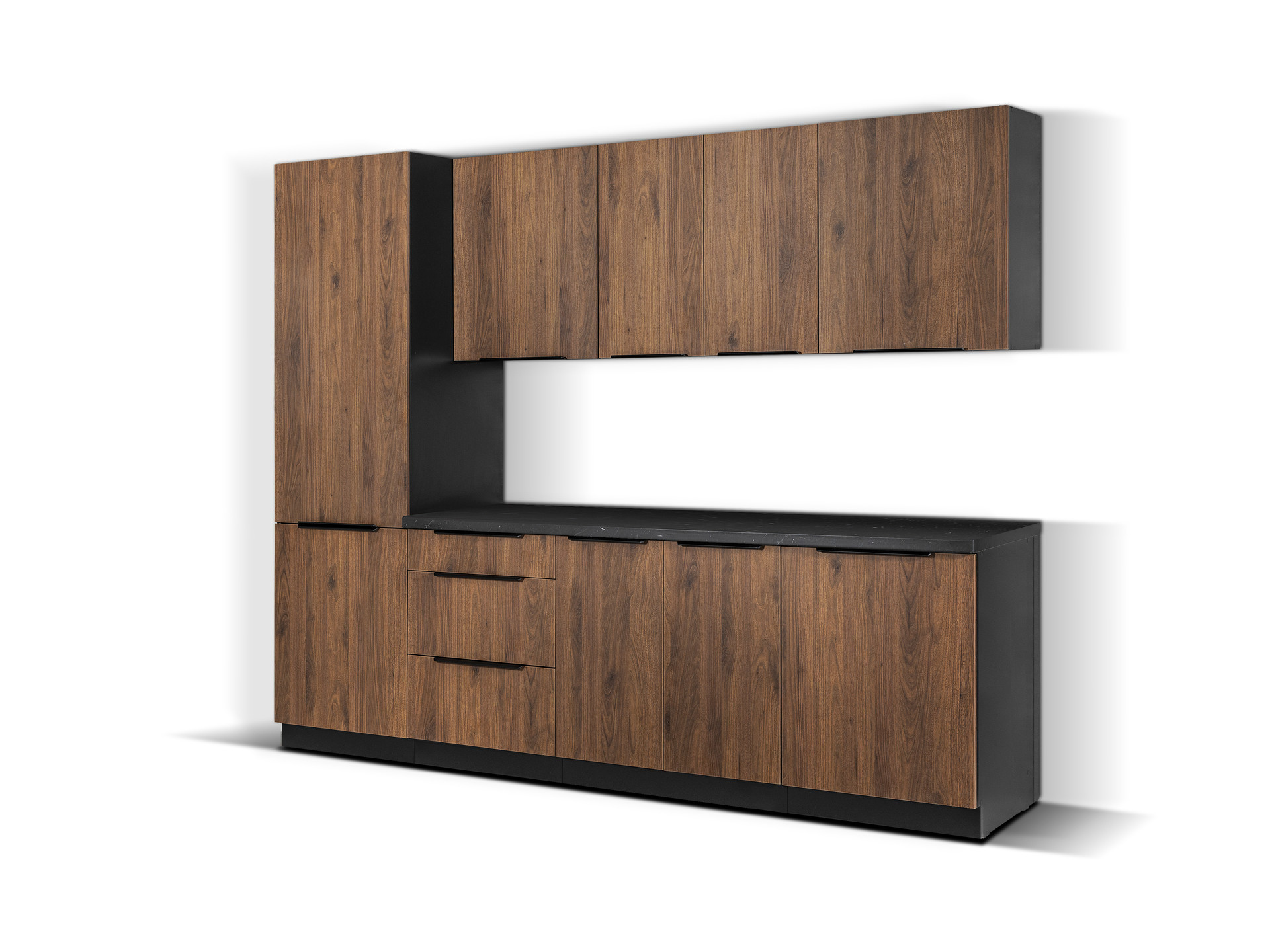 Górne szafki o wysokości 90 cm posiadają 3 półki w środku (z wyjątkiem szafek z frontami uchylnymi)