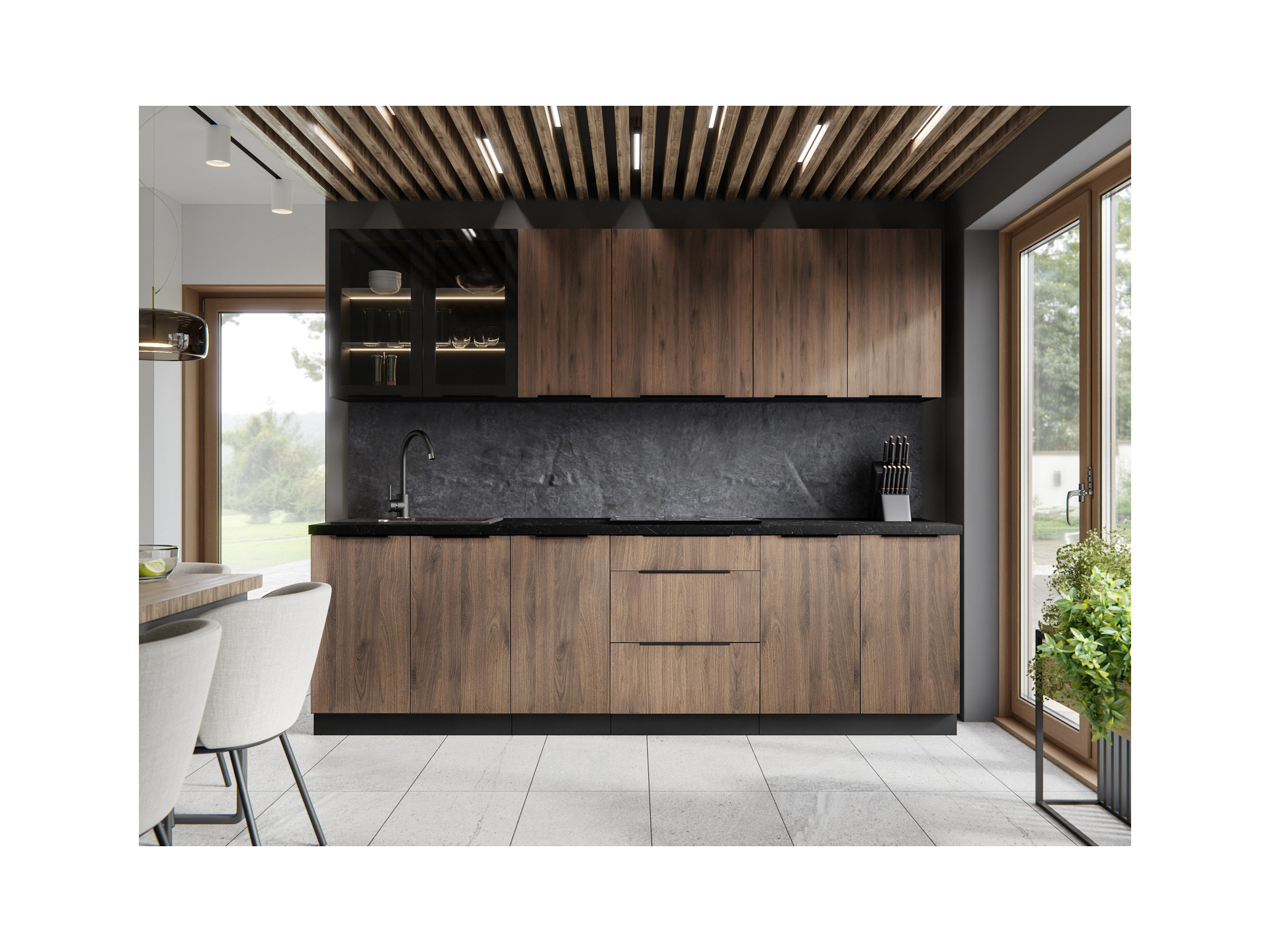 Górne szafki o wysokości 90 cm posiadają 3 półki w środku (z wyjątkiem szafek z frontami uchylnymi)